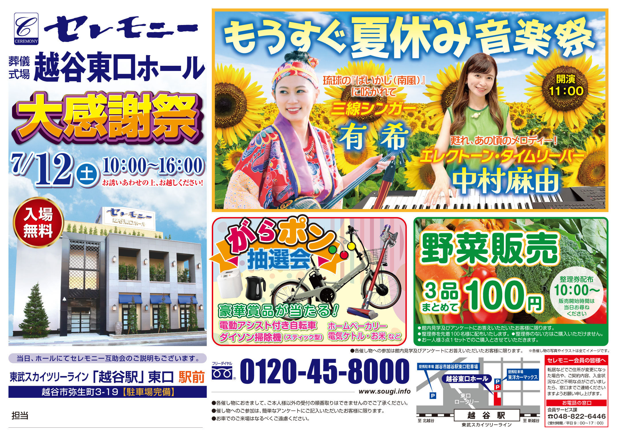 セレモニー越谷東口ホールで行われるもうすぐ夏休み音楽祭で歌います🎤