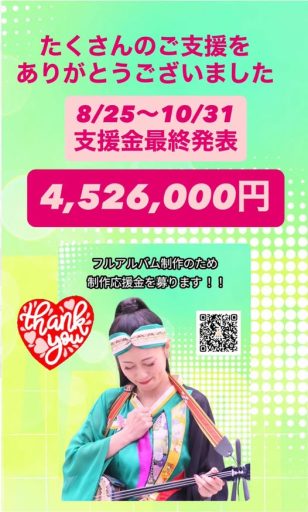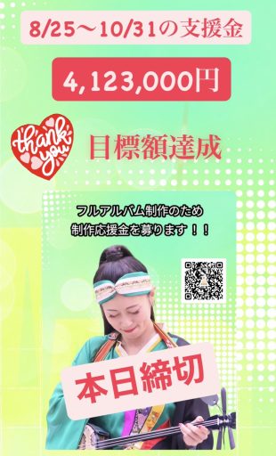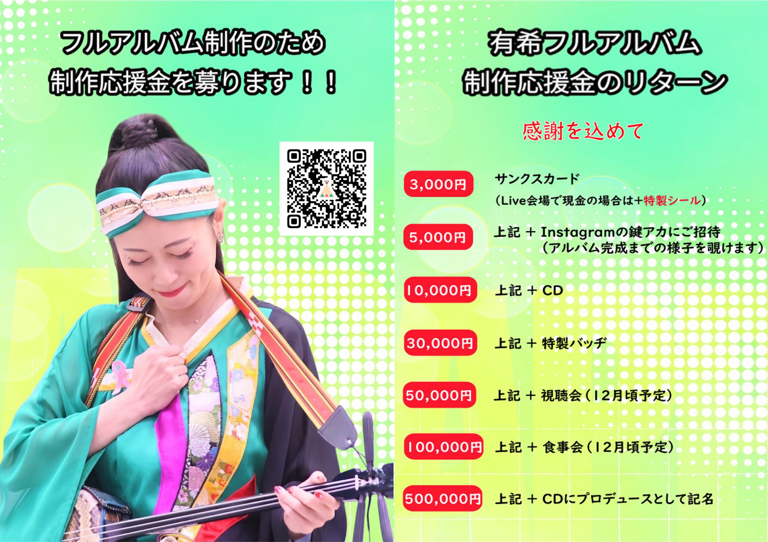 有希初のフルアルバム制作の為の制作応援金を10/31まで募らせていただきました。